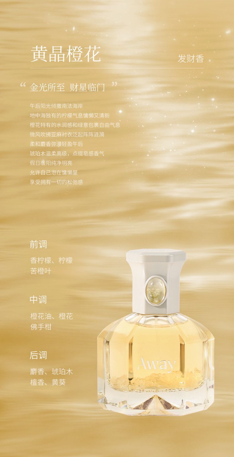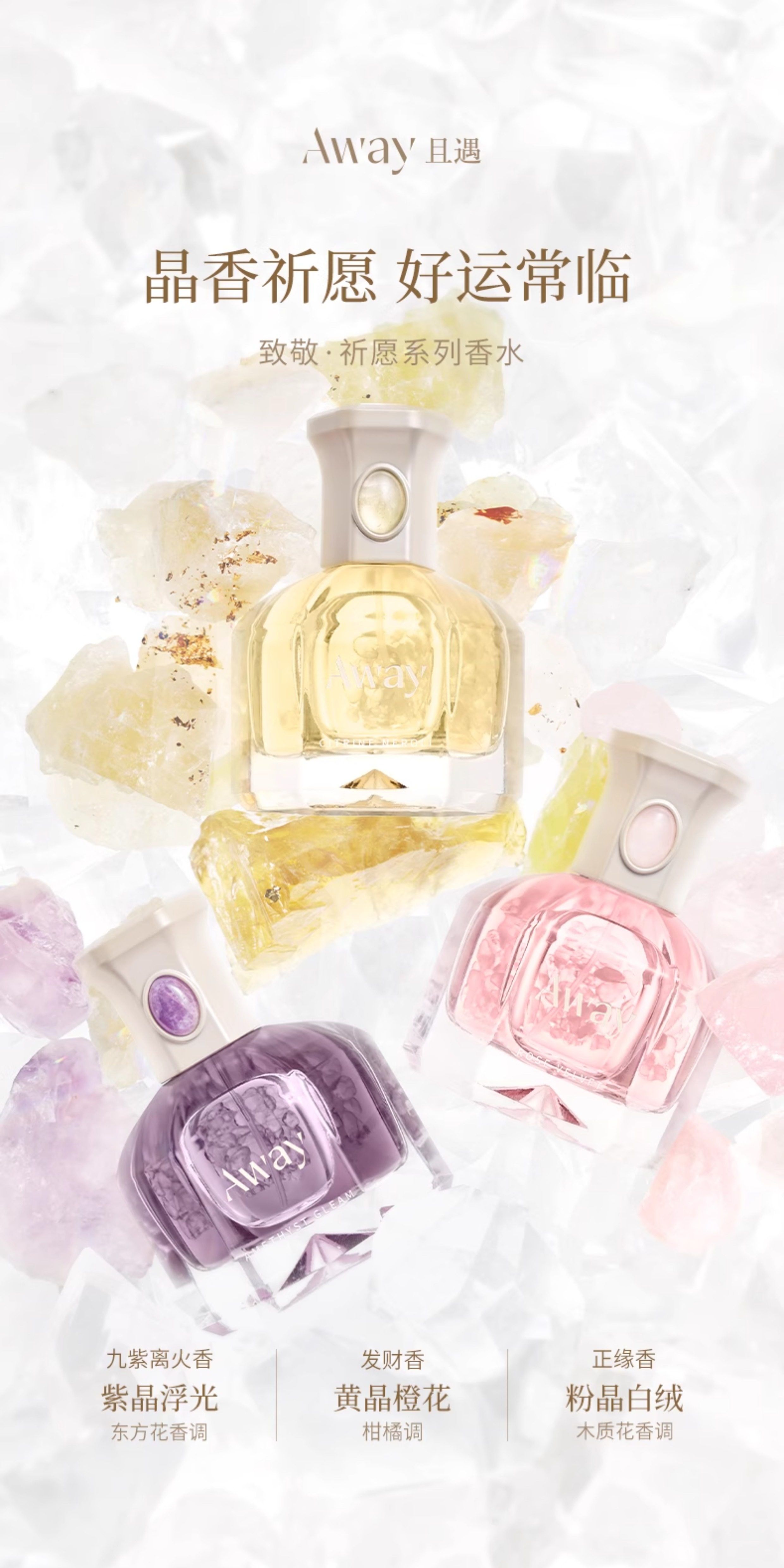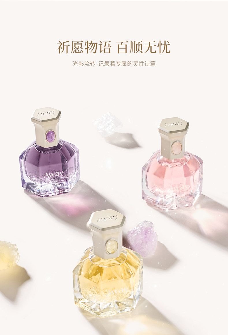 達人推薦 且遇Away致敬祈願系列香水黃晶橙花粉晶白絨紫晶浮光