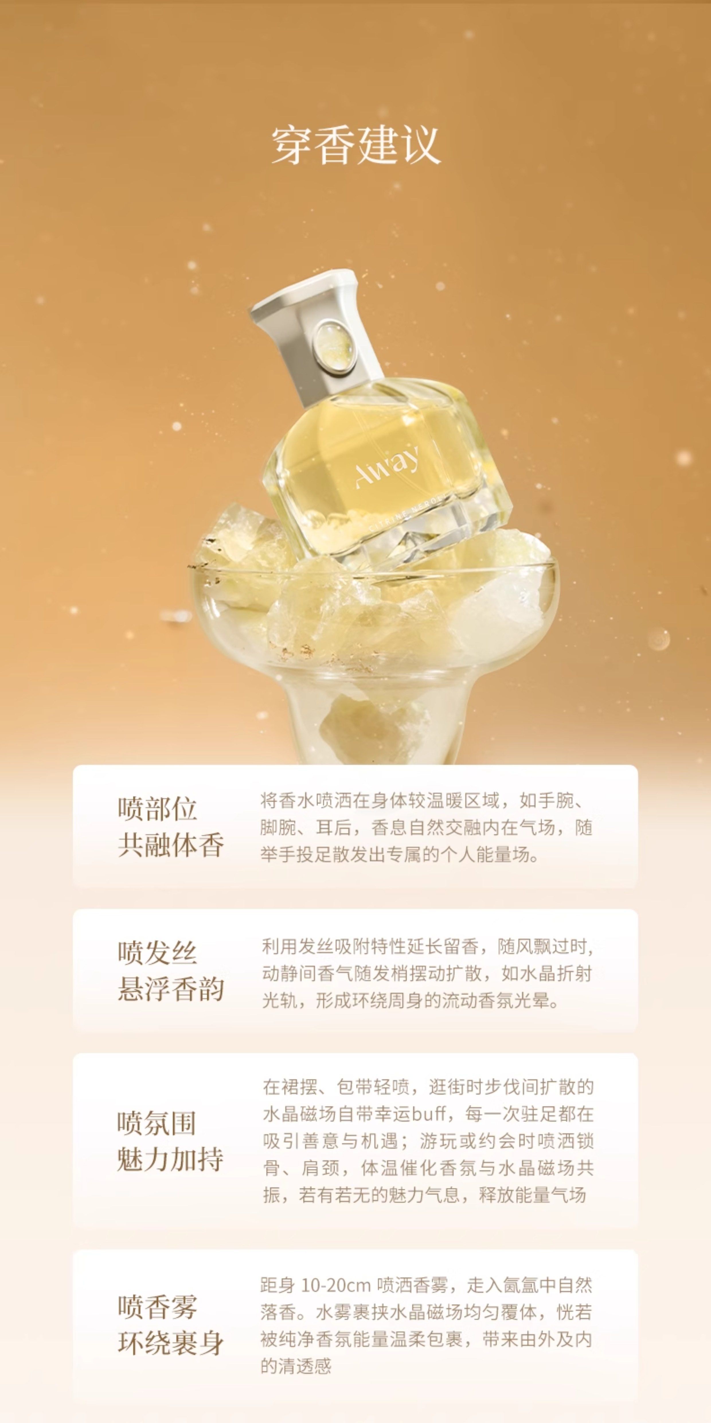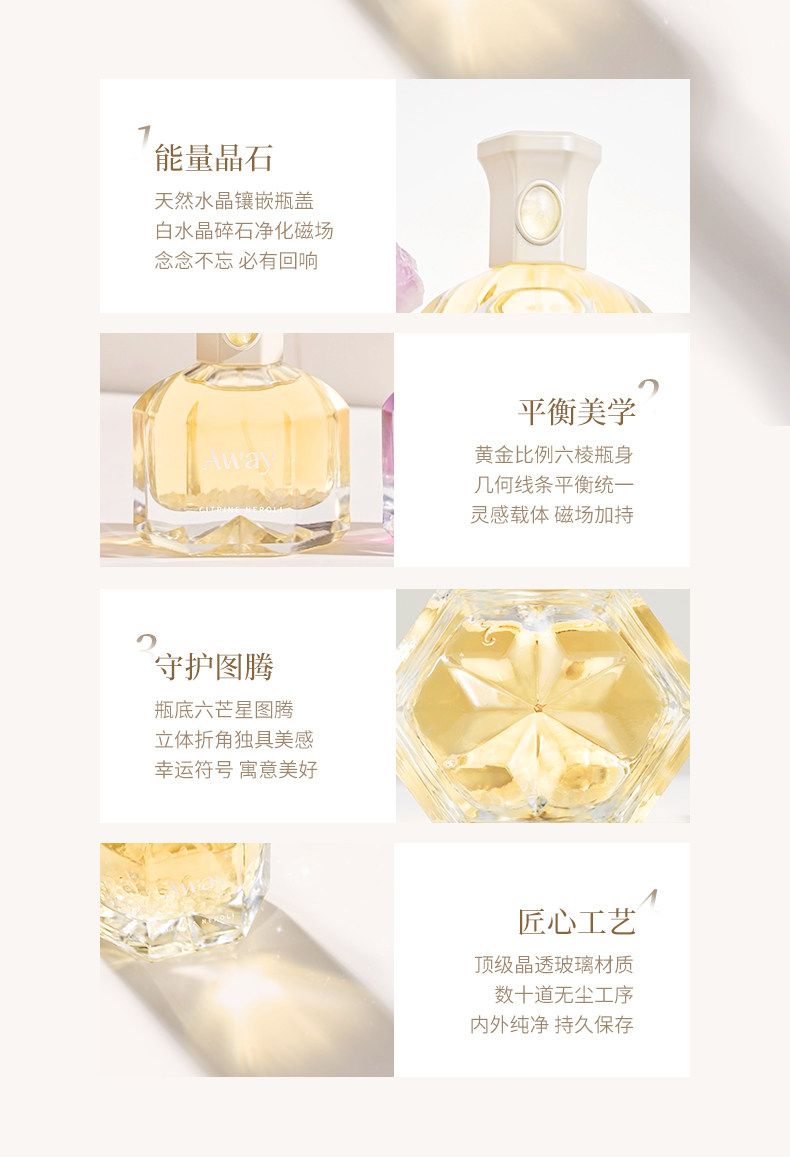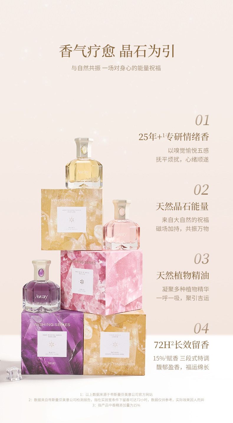 達人推薦 且遇Away致敬祈願系列香水黃晶橙花粉晶白絨紫晶浮光