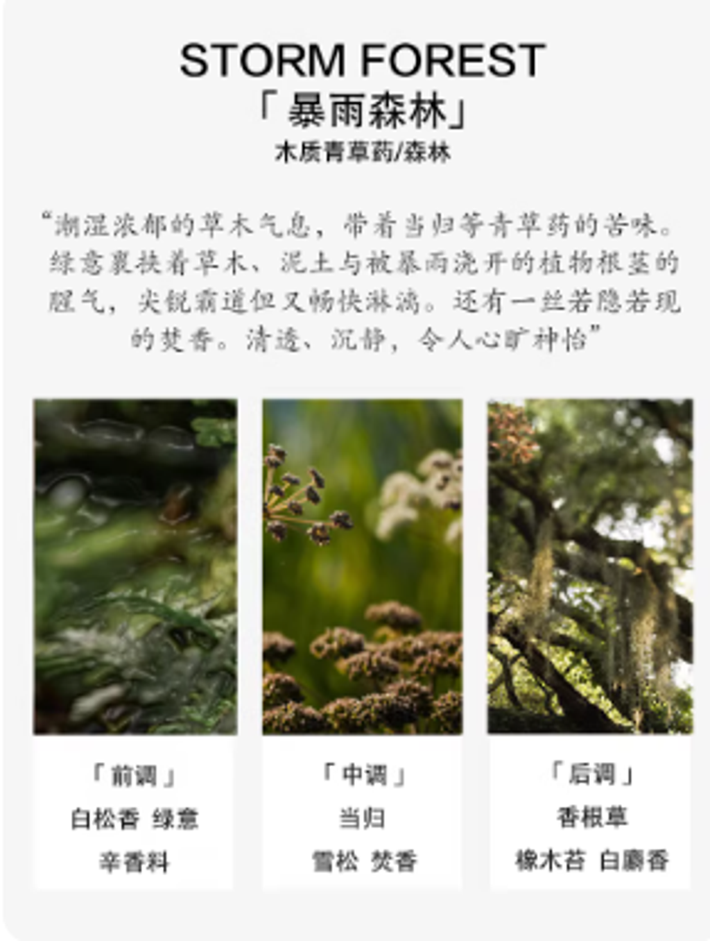 「暴雨森林」潮溼草木與清苦藥香 荼蘼原創雨後空氣泥土清新香水